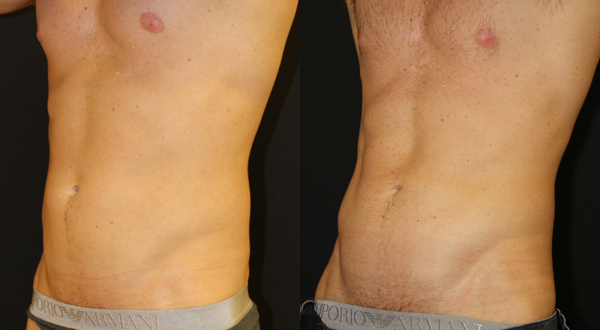 Male patient in his late 20′s. Patient is in great physical shape but had stubborn fatty deposits in his abdominal region. Abdomen was treated with liposuction. Results are shown 6 months post-opertively.
